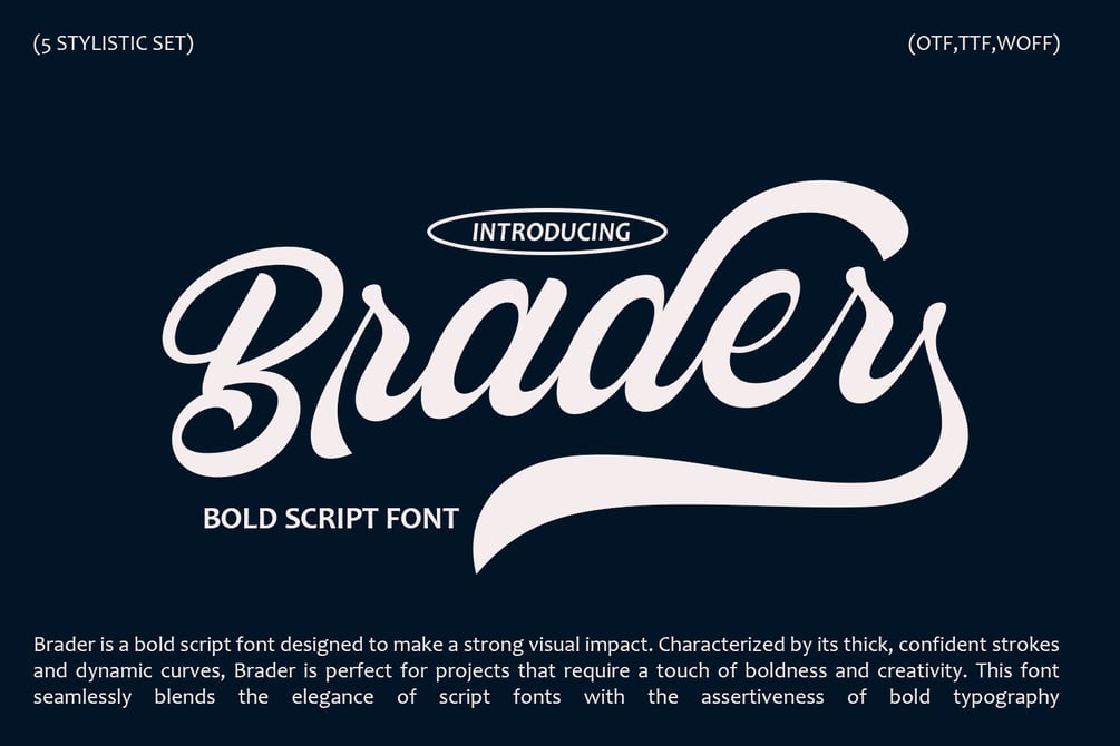 - Ideal for branding, logos, headlines, posters, and packaging, Brader is suitable for a wide range of creative projects.