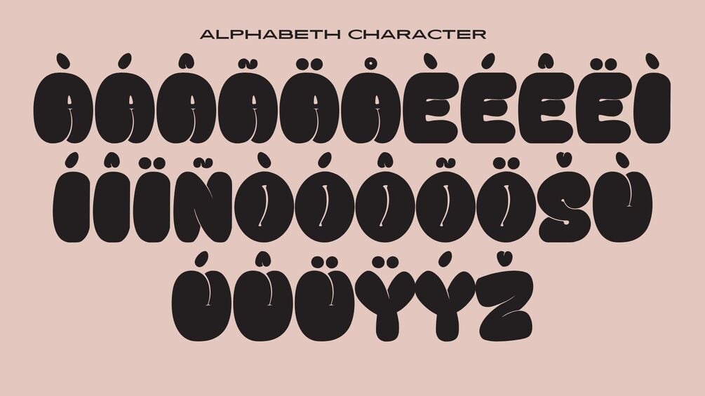- Rounded and Curvaceous Letters: The main feature of the Giant Boss font is its curved and bouncy appearance. Each letter is designed with rounded edges, which gives a soft, playful, and cheerful feeling.