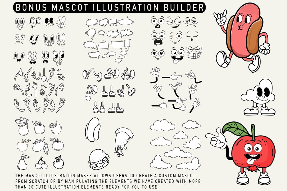 AND YOU WILL GET A BONUS ''BUILDER MASCOT ILLUSTRATION'' WITH MORE THAN 90 ELEMENT ILLUSTRATIONS IN IT WHICH CAN BE FREELY EDIT TONES WITH THE CHARACTERS YOU WANT
