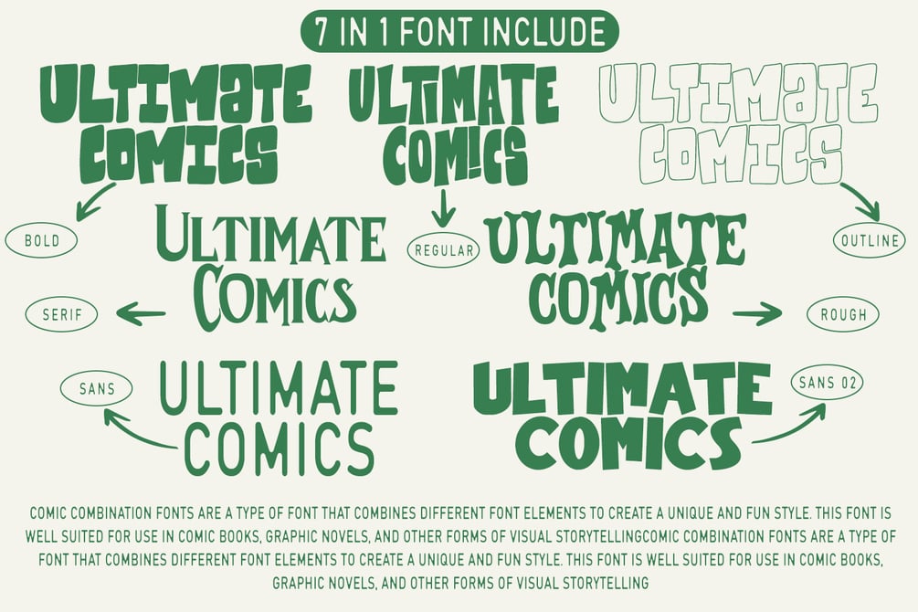 Comic combination fonts are a type of font that combines elements of different fonts to create a unique and fun style. These fonts are often used in comic books, graphic novels, and other forms of visual storytelling. The following are six popular comic combination fonts and a full description of their style and characteristics.